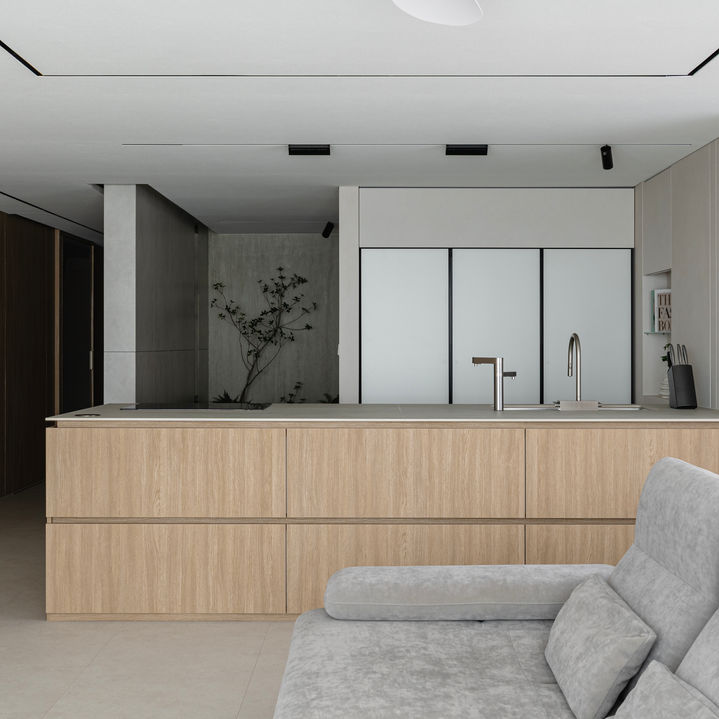 차분한 라이트 우드 컬러로 따뜻함을 더한 공간. 사용자의 취향이 담긴 현장.